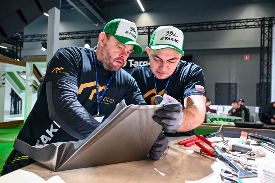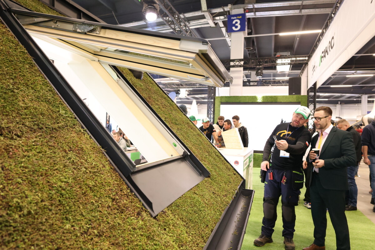 FAKRO zaprezentowało swoje rozwiązania na dużym, nowoczesnym stoisku, które przez dwa dni targów było miejscem intensywnych spotkań, rozmów branżowych oraz prezentacji produktów. Istotnym elementem obecności firmy były dwudniowe pokazy dla dekarzy w Strefie Rzemiosła, realizowane bezpośrednio na stoisku FAKRO. Odwiedzający mieli możliwość obserwowania pracy fachowców na żywo, poznania zasad montażu oraz praktycznego wykorzystania nowoczesnych rozwiązań dachowych. Duże zainteresowanie wzbudzała także makieta zielonego dachu, wykonana przez zespół DANBUD – Daniel Grabowski, prezentująca system montażu i obróbki blacharskiej zielonego dachu spadzistego.
