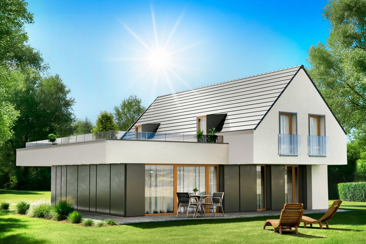 W ofercie Braas oba aspekty można połączyć, dostępne są bowiem modele odpowiadające różnym stylom architektonicznym. W nowoczesnych projektach dobrze odnajdują się dachówki płaskie, takie jak Teviva, a w bardziej tradycyjnych bryłach – profile faliste, jak Bałtycka czy Celtycka.