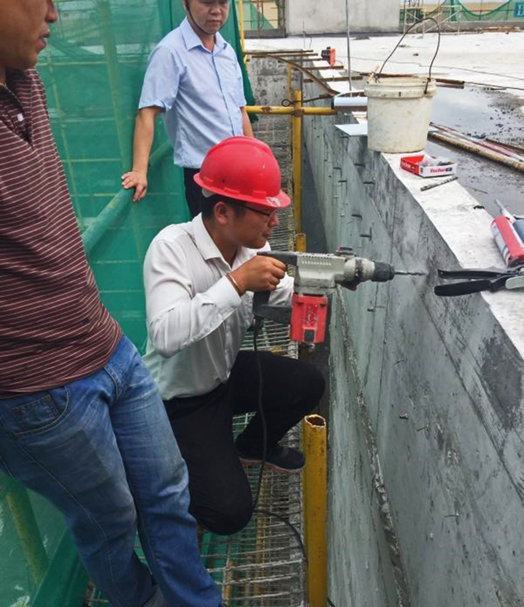 Mocna zaprawa iniekcyjna FIS EM Plus 390 S, do połączeń prętów zbrojeniowych o wysokich wartościach nośności osiąganych w betonie, znalazła zastosowanie w trudnych warunkach regionów przybrzeżnych, gdzie konstrukcje są stale narażone na dużą wilgotność, wysokie temperatury i dużą korozyjność powodowaną przez słoną mgłę morską. Zaprawa iniekcyjna fischer została dokładnie przetestowana, aby upewnić się, że zachowa swoją funkcjonalność w tego typu otoczeniu. FIS EM Plus 390 S pozytywnie przeszła długoterminowe testy naprężeń oraz metody badań korozyjnych. Dodatkowo badano również długoterminowe zachowanie zaprawy iniekcyjnej poprzez testy bezpieczeństwa w Niemczech i za granicą, za pośrednictwem ETA oraz testy ICC, oraz inne procesy certyfikacyjne. Po serii rygorystycznych badań oraz testów na miejscu budowy, klient ostatecznie zdecydował się na ten właśnie system zamocowania, do montażu zbrojenia w podziemnych kondygnacjach budynku.