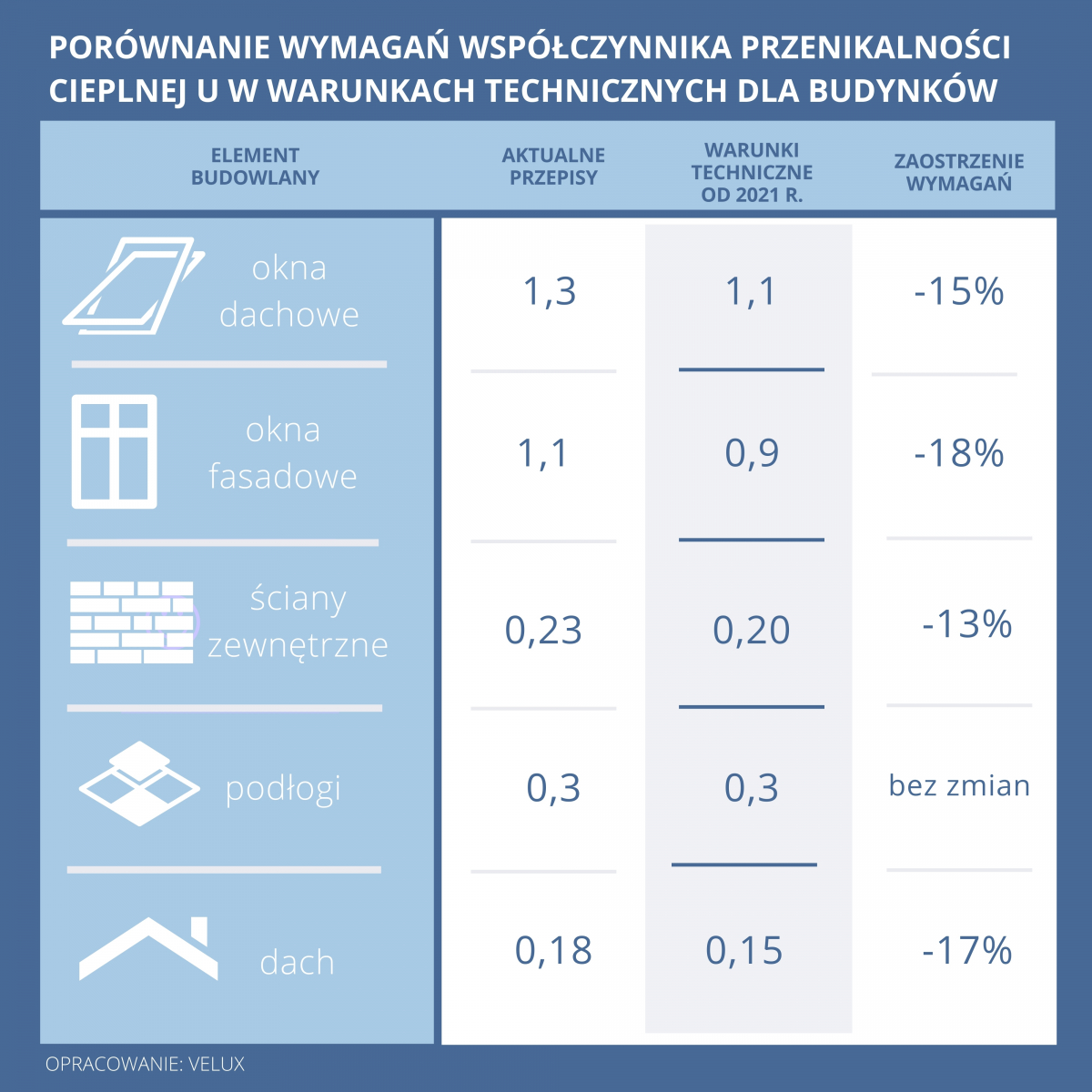 Od 1 stycznia 2021 roku będą obowiązywać nowe Warunki Techniczne, które zmieniają m.in. wymagane parametry techniczne okien. Osoby, które planują budowę lub modernizację domu muszą uwzględnić je w swoich inwestycjach. Firma VELUX od dawna posiada w swojej ofercie okna spełniające nowe warunki, jednak zapowiada kolejną odsłonę portfolio produktowego. Będzie to kolejny krok w odpowiedzi na oczekiwania polskich konsumentów oraz trendy w zrównoważonym budownictwie.