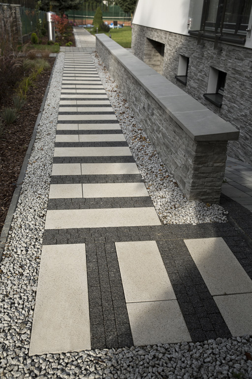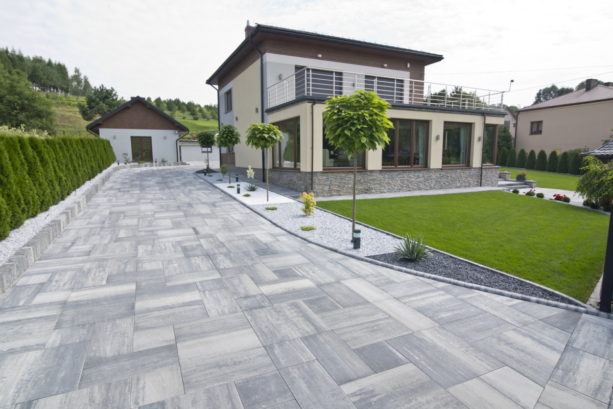 Kostki i płyty brukowe w modnych barwach szarych wapieni, współgrają z budynkami w różnych stylach, zarówno nowoczesnym, jak i klasycznym. Łatwo się je układa dzięki temu, że są dość duże. Zdadzą egzamin przy budowaniu ścieżek i tarasów w ogrodzie. Dzięki odpowiedniej grubości (8 cm), są mocne i wytrzymałe, a więc idealnie sprawdzają się również na podjazdach do posesji.