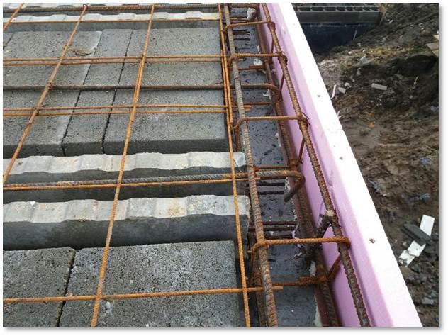 Należy zwrócić szczególną uwagę na odpowiednie dozbrojenie płyty balkonowej. Wykonanie obniżonej strefy przybalkonowej za pomocą niskich pustaków betonowych spowoduje, że warstwa nadbetonu będzie grubsza przez co zapewniona będzie odpowiednia otulina dla prętów stalowych. Rozwiązanie to znakomicie sprawdza się również w przypadku stosowania energooszczędnych łączników balkonowych, które eliminują konieczność montażu izolacji termicznej płyty balkonowej.