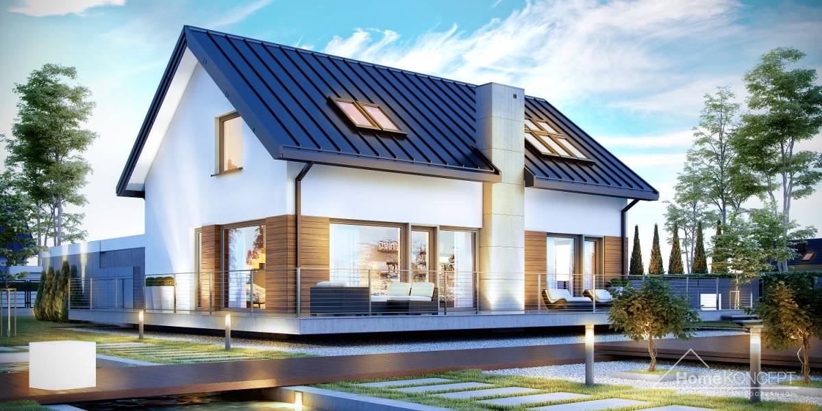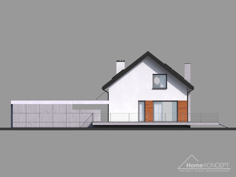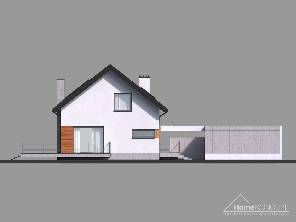 HomeKONCEPT-16 to projekt domu energooszczędnego, charakteryzującego się zwartą bryłą oraz optymalną powierzchnią użytkową. Klasyczny, dwuspadowy dach z wyeksponowanym pionem kominowym oraz piękny taras okalający dom z pewnością przyciąga uwagę. W projekcie tym przewidziany jest jednostanowiskowy garaż będący osobnym budynkiem, dzięki czemu jego położenie można dopasować odpowiednio do warunków działki. Takie rozwiązanie pozwoli też zaoszczędzić na kosztach ogrzewania. Zastosowana w projekcie wentylacja mechaniczna z odzyskiem ciepła, energooszczędna stolarka okienna i drzwiowa oraz odpowiednie docieplenie ścian przyczyni się do obniżenia kosztów utrzymania domu w okresie użytkowania.