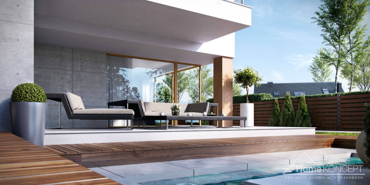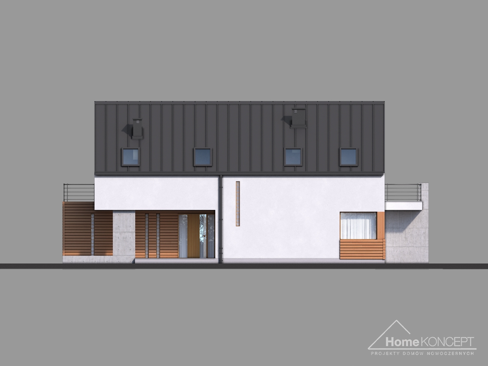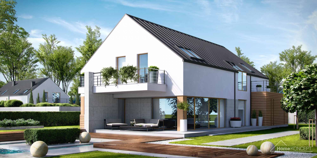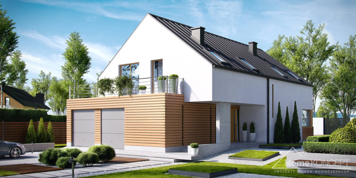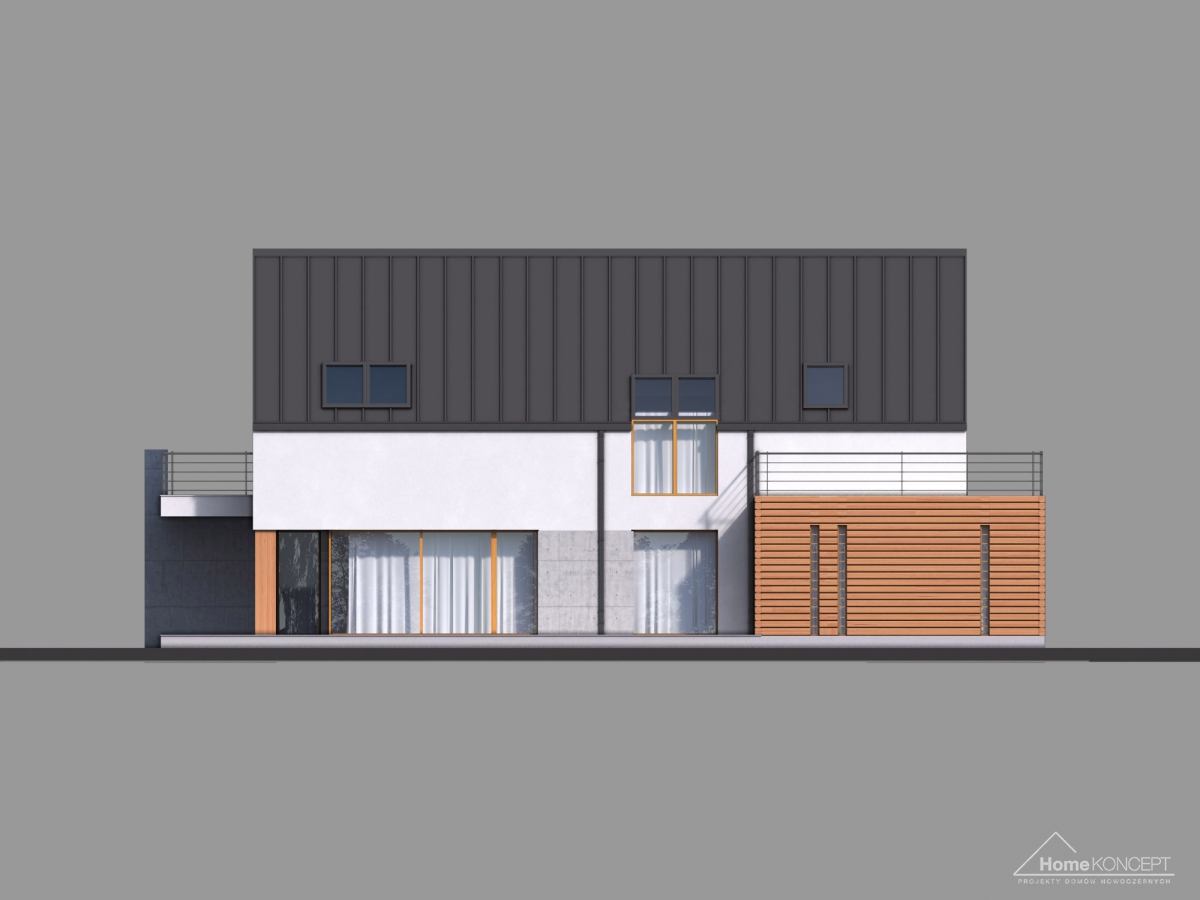 HomeKONCEPT-19 to propozycja jednego z najnowocześniejszych domów w naszej kolekcji. Prosta, minimalistyczna bryła, bezokapowy dach oraz ciekawe materiały elewacyjne zwracają uwagę z zewnątrz. Jest to projekt domu energooszczędnego. Zastosowaliśmy tu wentylację mechaniczną z odzyskiem ciepła, odpowiednio grube ocieplenie przegród oraz energooszczędną stolarkę okienną i drzwiową. Ogromną zaletą tego domu jest możliwość wybudowania go na wąskiej działce – jej minimalna wymagana szerokość to jedynie 18.45 m.