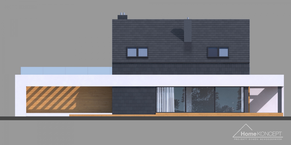 Projekt HomeKONCEPT 50. Projekt domu jednorodzinnego, wolnostojącego. Dom zbudowany jest w technologii energooszczędnej. Wszystkie projekty są zgodne z najnowszymi przepisami obowiązującymi od stycznia 2017 r. dotyczącymi energooszczędności budynków mieszkalnych.
