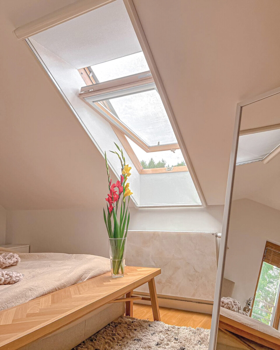 Wprawdzie zewnętrzne akcesoria do okien dachowych lepiej chronią przed przegrzewaniem, ale rolety wewnętrzne też dobrze sobie radzą ze słońcem, a wizualnie to właśnie one umilają nam poddasze – a przy okazji mają też cenne zalety użytkowe.
