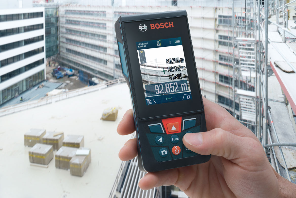 Dalmierze laserowe cenią profesjonaliści z wielu branż – szybkie i precyzyjne pomiary to ogromne ułatwienie w pracy. Jednak do tej pory namierzenie punktu laserowego dalmierza w jasnym otoczeniu lub przy większych odległościach mogło sprawiać trudności. Teraz Bosch rozwiązuje ten problem – GLM 120 C Professional to pierwszy dalmierz laserowy tej marki wyposażony w kamerę. Za pomocą kamery i siatki celowniczej na wyświetlaczu, użytkownicy mogą dokładnie namierzyć cel i wykonać precyzyjne pomiary także przy większych odległościach – aż do 120 m. Kamera posiada rozdzielczość 5 megapikseli, trzystopniowy zoom i może zapisać w pamięci 50 zdjęć wraz z datą i wykonanymi pomiarami.
