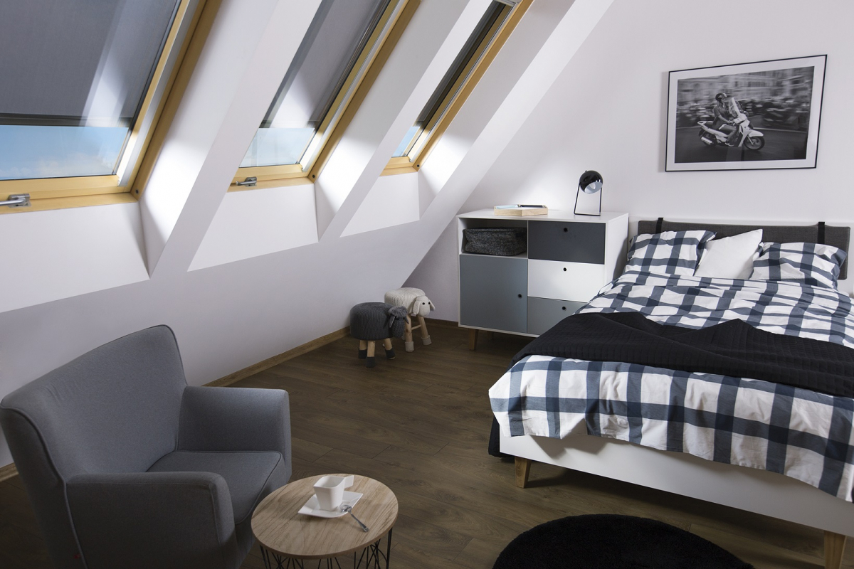W okresie pandemii mocno doceniliśmy kontakt z przyrodą i nawet przebywając w swoich domach chcemy ją mieć jak najbliżej, „na wyciągnięcie ręki”. Rozwiązaniem, które nam to umożliwi, bez konieczności opuszczania pomieszczenia na poddaszu, jest okno balkonowe – jego otwarte skrzydła tworzą balkon, dzięki czemu możemy cieszyć się świeżym powietrzem i pobliską zielenią. Jeszcze lepsze doświetlenie wnętrz naturalnym światłem i rozległy widok na otoczenie obiektu uzyskamy stosując większe rozmiary okien lub ich zespolenia.