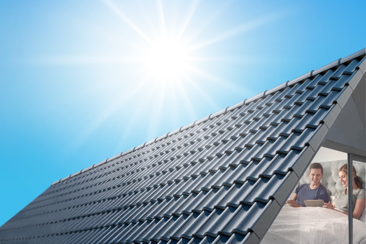 Z myślą o ochronie przed nadmiernym nagrzewaniem się dachu w upalne dni, marka Braas wprowadziła innowacyjne, betonowe dachówki TermoComfort. Ich wyjątkowa powłoka TermoComfort odbija promieniowanie słoneczne, co sprawia, że dachówki nagrzewają się wolniej i mniej intensywnie, skutecznie obniżają temperaturę na poddaszu nawet o 5,8 stopnia C. w upalne dni*