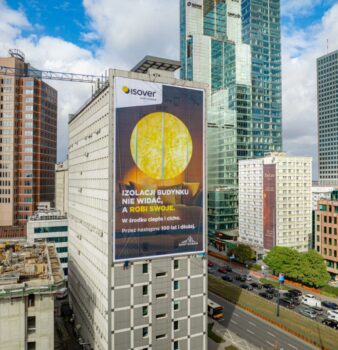 Niższe rachunki za ogrzewanie i wiele więcej. ISOVER pokazuje niewidzialną moc izolacji za pomocą wielkoformatowego banera w centrum Warszawy
